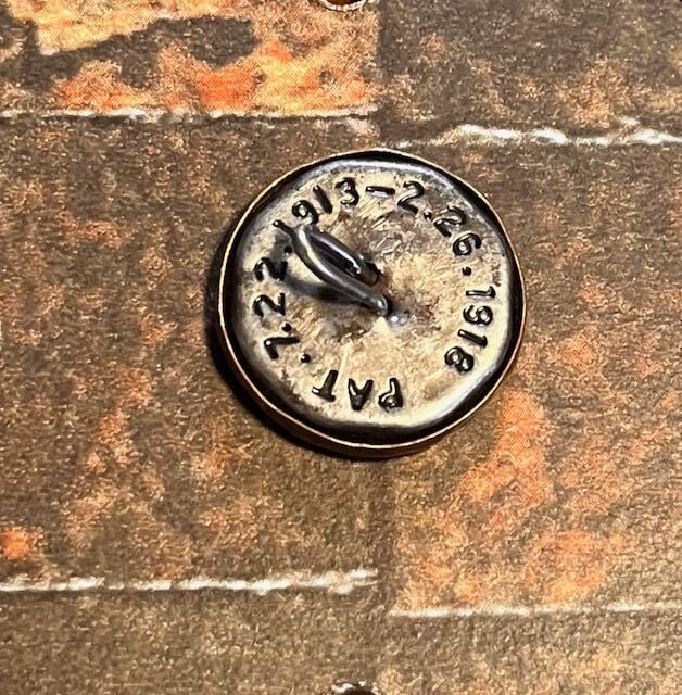 トレードマークの豚の意匠が刻まれたボタンは現存数が少なくなっており、且つ裏のパテント入りとなるとレア度は増します。