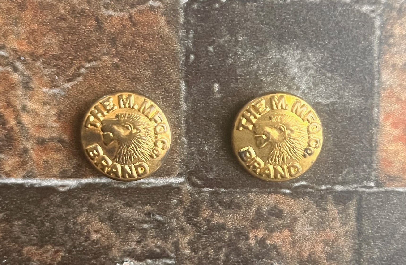 ライオンの頭が刻まれたカフスボタンです。